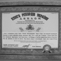 в связи с установлением рекорда Украины. Категория «Коллекции» - самая большая коллекция керосиновых ламп 19-20 столетия (бытовые, железнодорожные, уличные, шахтёрские и т.д.). Зафиксированные результаты: Количество экспонатов составляет 150 единиц. Место фиксации рекорда: г.Кропивницкий, Украина. Дата: 3 июня 2017 года.